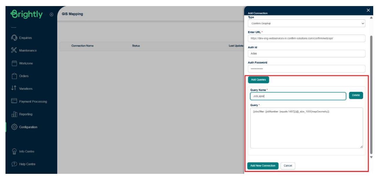 Click on Add Queries to include multiple layers under the same connection. For each query: