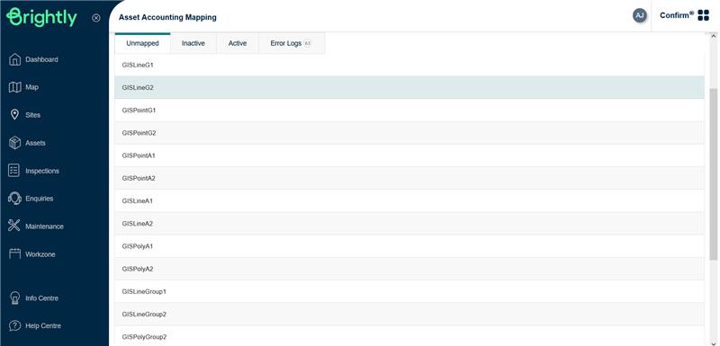 - Unmapped: Shows all Feature Groups in Confirm which have not been mapped to an Asset Category in the Financial Asset Register. Assets within this Feature Group are not currently being synchronised to the Financial Asset Register, therefore will not be available for Accounting & Valuation purposes.