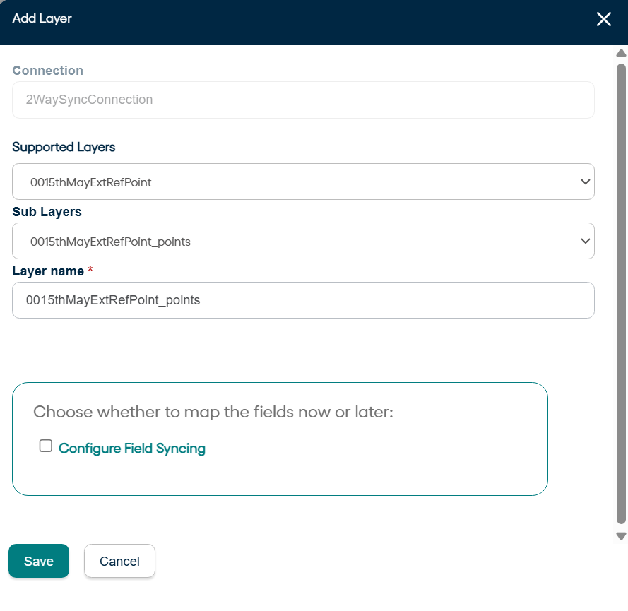 Connection and Layers are created now. The next step for 2-way sync is to do entity field mappings.