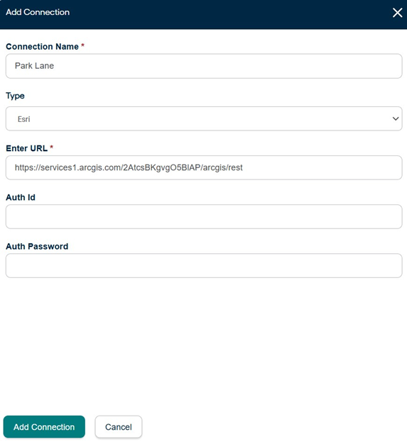 Wait for Supported Layers to load. The supported Layers are populated using the /rest/services endpoint of ESRI. Based on the information provided while creating connection, the respective layers are fetched from ESRI.